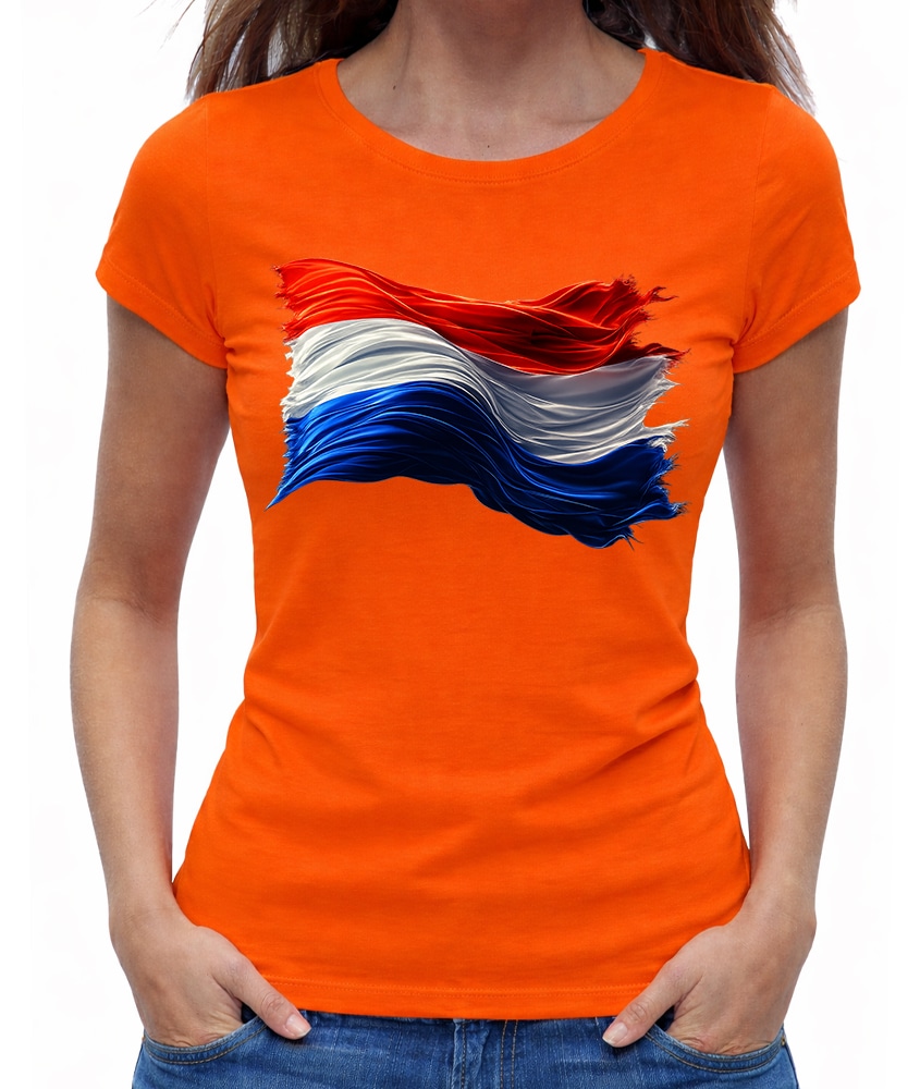 Oranje Shirt Dames met Nederlandse Vlag